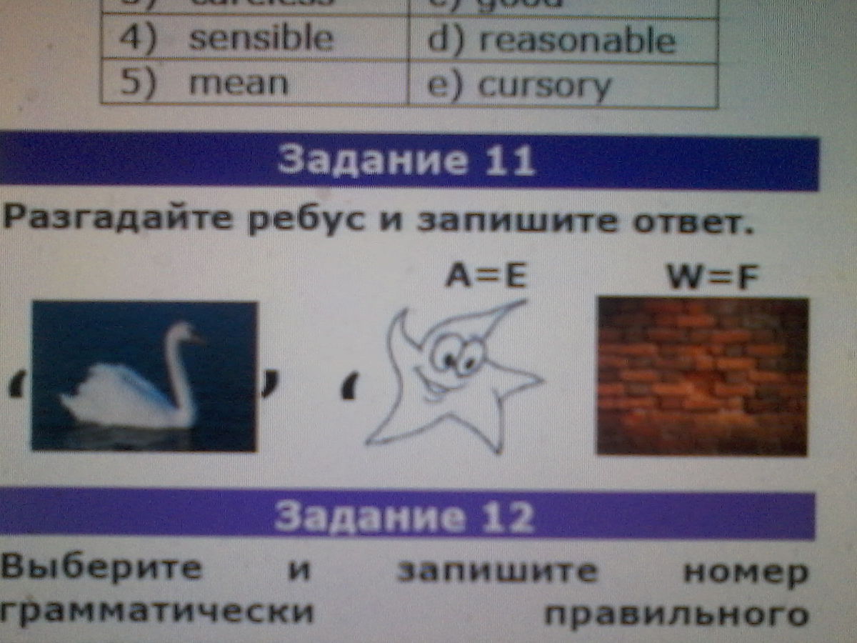 Получается лебедь Swan s и n убираем получается wa дальше звезда - star s убираем и меняем а на е получается ter стена - wall w меняем на f будет fall тем самым слово будет Waterfall