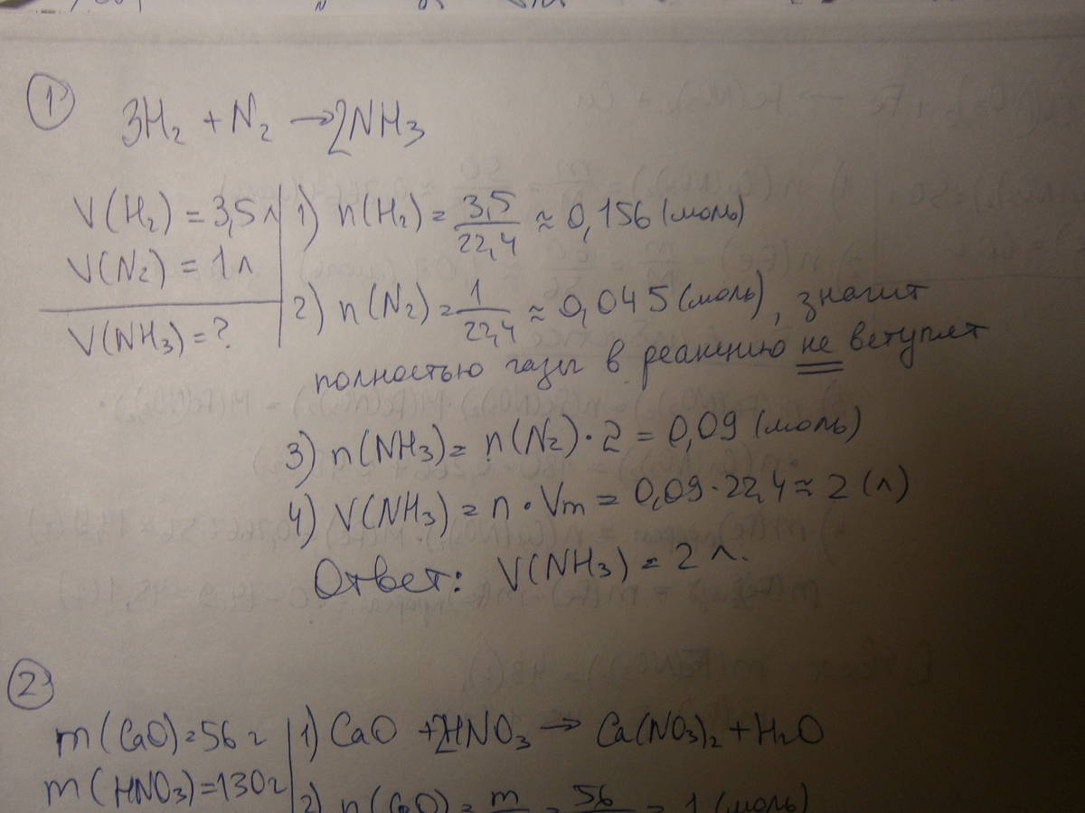 1)Вычислите, могут ли полностью вступить в реакцию предложенные объемы газов и какой объем продукта получиться . a) 3.5 л H и 1 литр N2 .