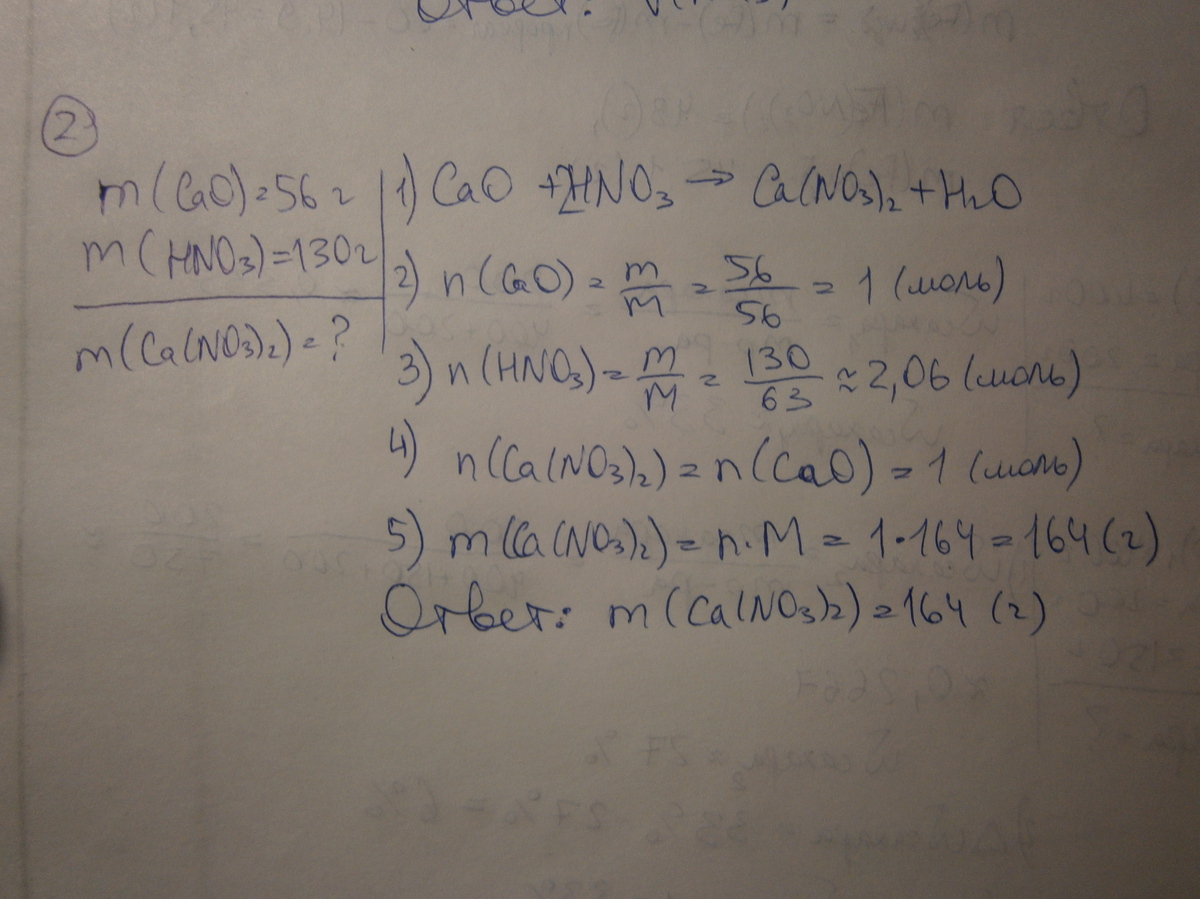 2)Сколько граммов соли получится если для реакции взять указанные массы исходных веществ a) 56 гр CaO и 130 гр HNO3