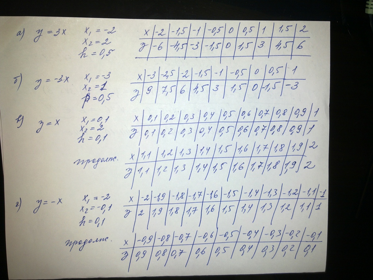 а) у = 3х ; х1 = -2 ; х2 =2 ; h = 0,5 ;