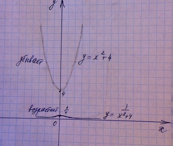 Там где квадратичная убывает на (-∞;0), данная возрастает( исключая точку х=-2) на (-∞;-2)U(-2;0)