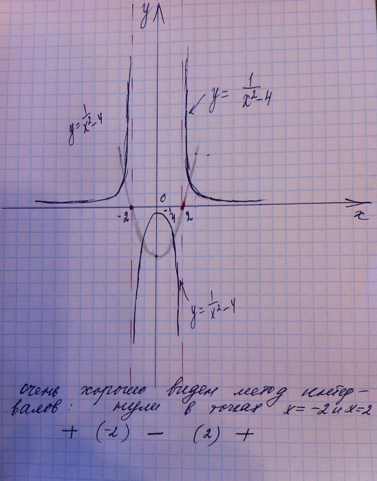 Хорошо виден метод интервалов для функции у =1/х²-4