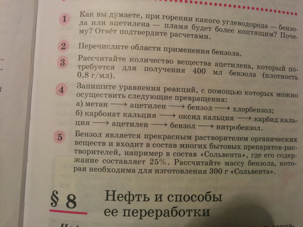 4) 3C2H2 =(Cакт., 500С)= C6H6