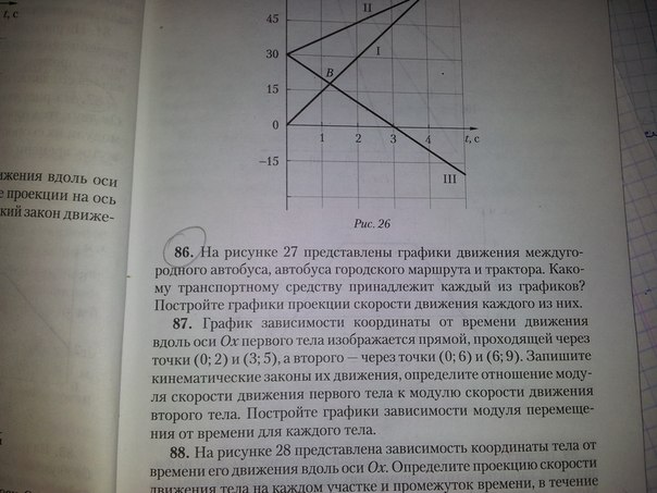 Думаю, логично предположить, что первый график принадлежит трактору, как самый короткий. Третий принадлежит автобусу городского маршрута, а второй междугородному автобусу, т.к. его координаты меняются больше остальных.