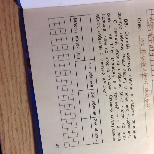 Масса яблок (кг) 36 кг ? на 17 кг < в 2 раза >