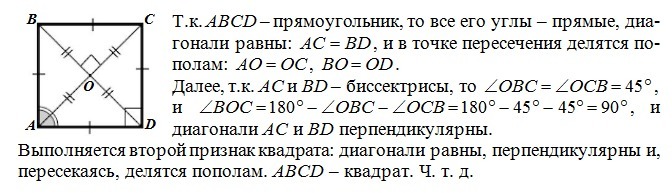 Докажите, что если у прямоугольника диагонали являются биссектрисами его углов, то он является квадратом