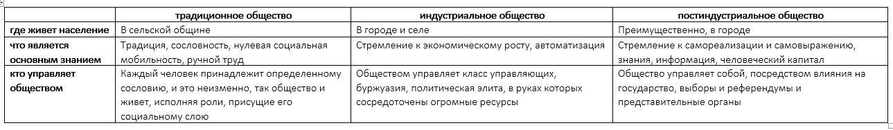 таблица 1)где живет население:традиционное общество, индустриальное общество, постиндустриальное общество.2) что является основным знанием: традиционное общество