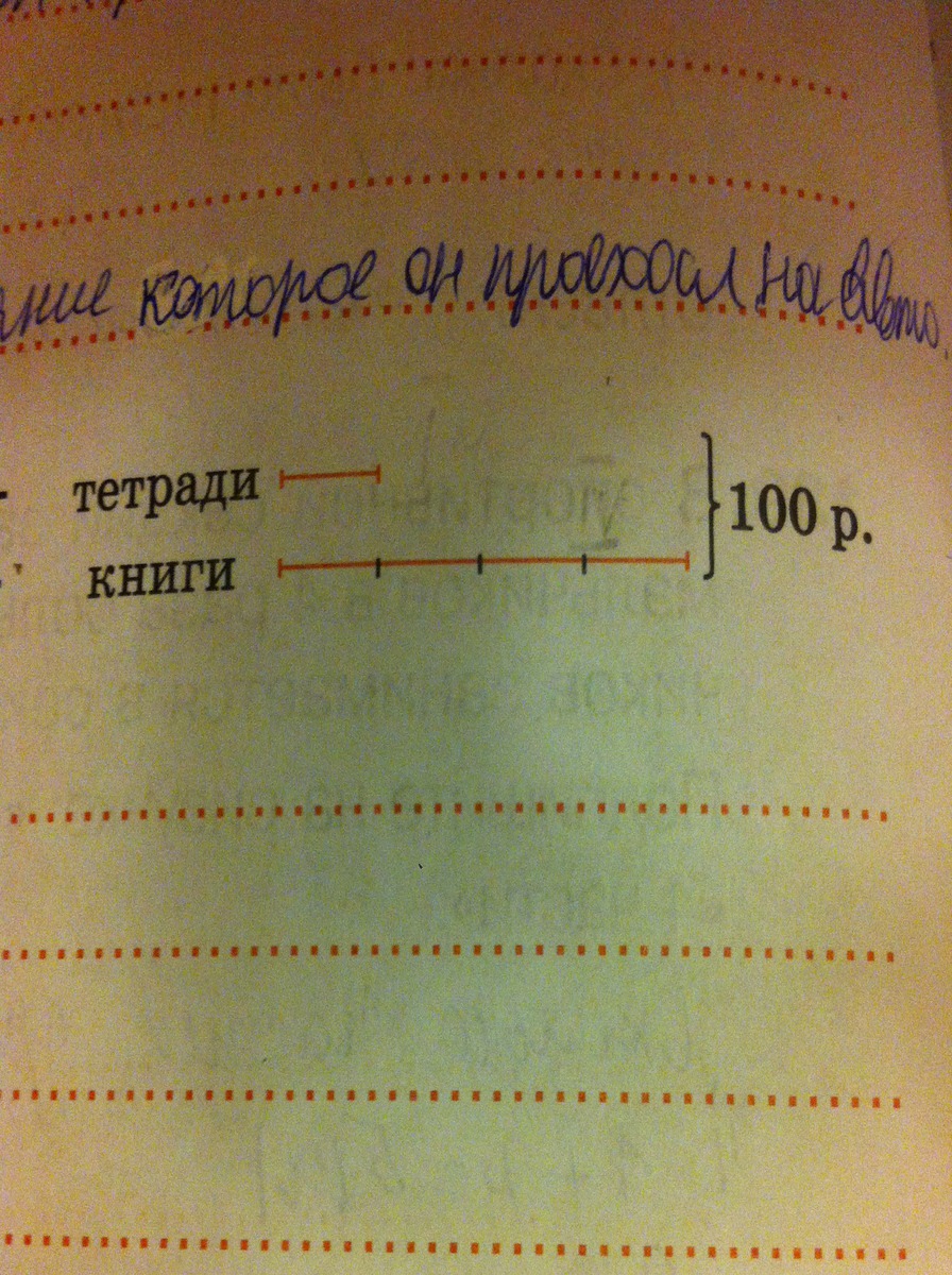 Купили одну тетрадь за х рублей, и 4 книги за у рублей. Всего потратили 100 рублей. Сколько стоят тетради, а сколько книги?