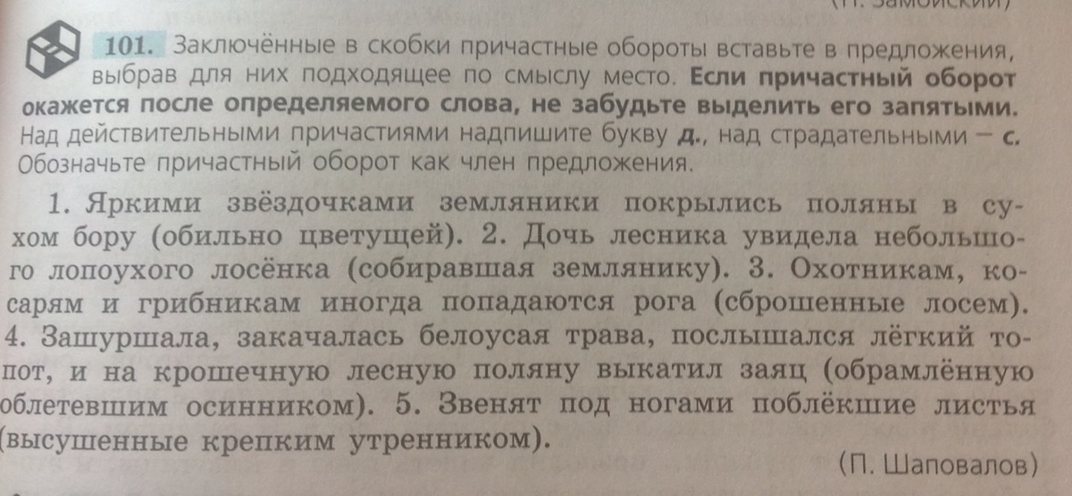 5.Звенят под ногами поблекшие (д) листья, высушенные (с) крепким утренником.