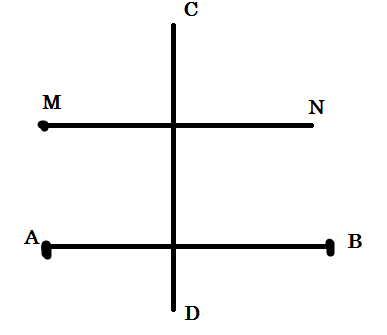 отметьте точка A,B,C,D,M и N так,чтобы отрезок AB пересекал прямую CD и не пересекал луч MN,а прямая CD пересекала луч MN