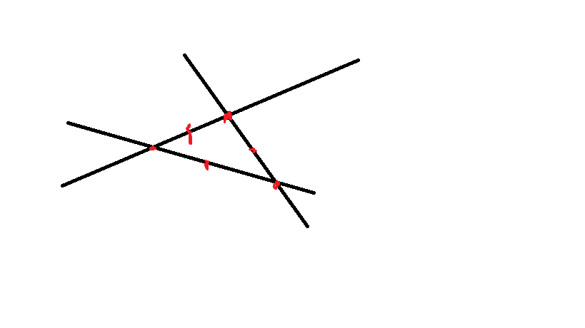Начертите 3 прямые так, чтобы на каждой прямой было отмечено по 3 точки , а всего было отмечено 6 точек
