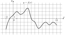 На рисунке изображен график функции y=f(x), определенной на интервале (-2; 12). Найдите сумму точек экстремума функции f(x).