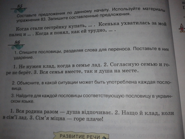 не ну'-жен кла'д, ког-да' в семье' ла'д. сог-ла'с-ную семью' и го'-ре не бе-рё'т. вся' семья' вме'с-те, так и ду-ша' на ме'с-те.