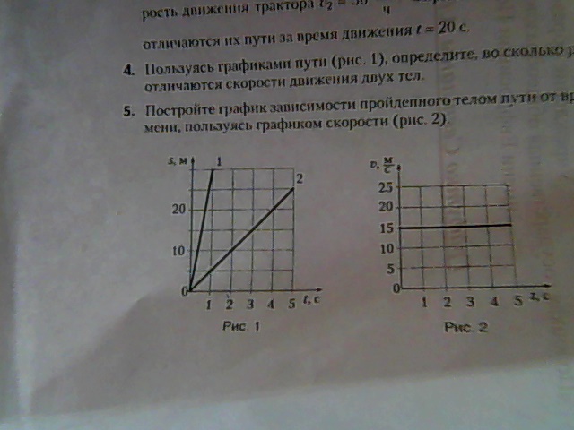 4.Пользуясь графиками пути(рисунок 1).определите,во сколько раз отличаются скорости движения двух тел.