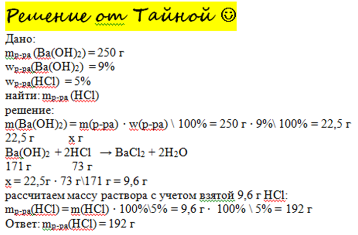 определите массу 5%-ного раствора соляной кислоты которая необходима для нейтрализации 250г 9% раствора гидроксида бария