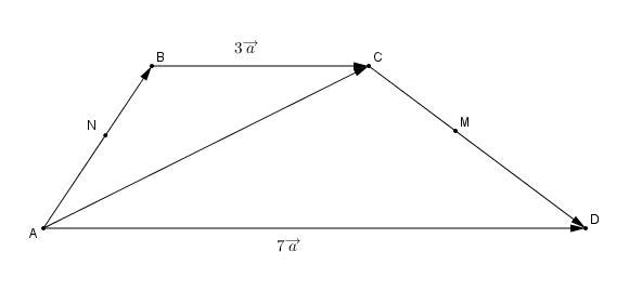 В трапеции ABCD c основаниями BC = 3a и AD = 7a: AN = NB и CM = MD. Найдите величину |AN + BC + MD|.
