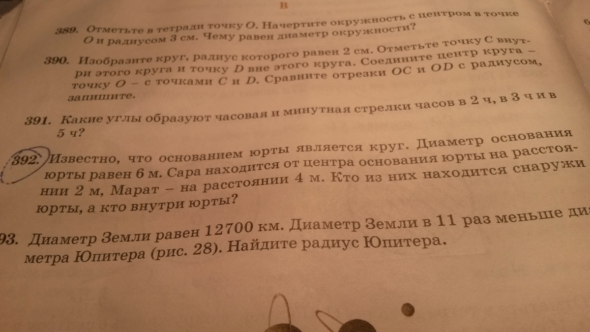 Марат на расстоянии 4 от центра, а т.к. 4>3, значит она за границей круга, т.е. за пределами юрты