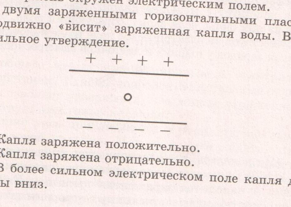 в)В более сильном электрическом поле капля двигалась бы вниз.