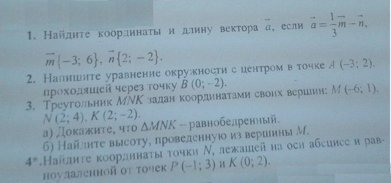 Так как ординаты точек стороны NK равны, то эта сторона вертикальна, а высота из точки М - горизонтальна,