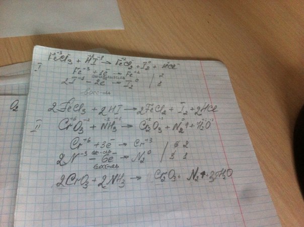 Составить окислительно- восстановительный баланс, указать окислитель и восстановитель и расставить коэффи- циенты в следующих реакциях:1)FeCl3+HI-->FeCI2+I2+HCI 2) CrO3+NH3-->Cr2O3+N2 | +H2O