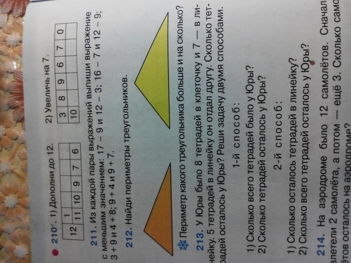 померить линейкой стороны треугольника и сложить их, также и во втором треугольнике