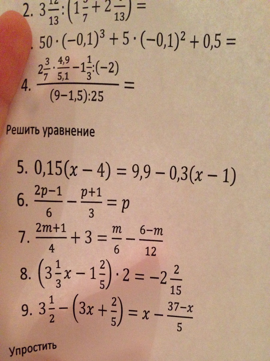 5) 0,15(X-4)=9.9-0.3(X-1)