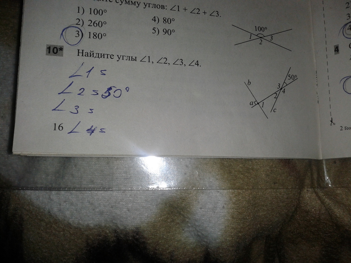 3 и 4 по 36 градусов так как весь круг 360 градусов угол 2 и напротив его по 50. 50+50=100. 360/100=36