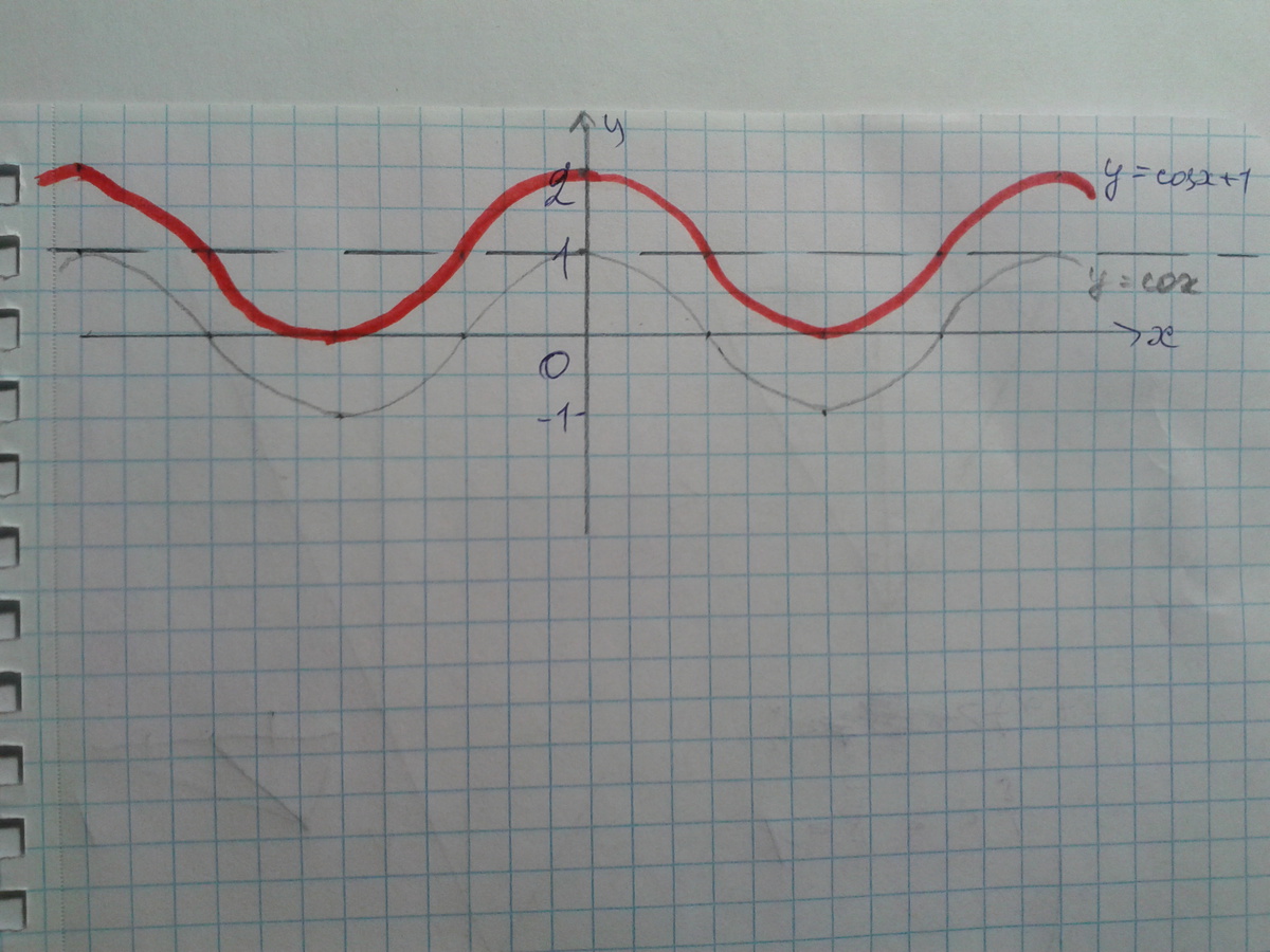 График получаем параллельным переносом графика y=cos x на 1 ед. вверх.