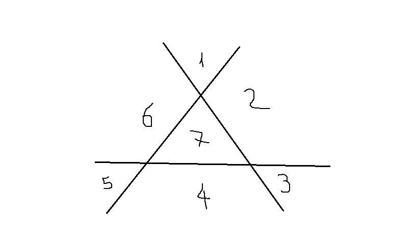 каким образом расположены на плоскости три прямые, если они разделили плоскость на семь частей? чертёж + ответ