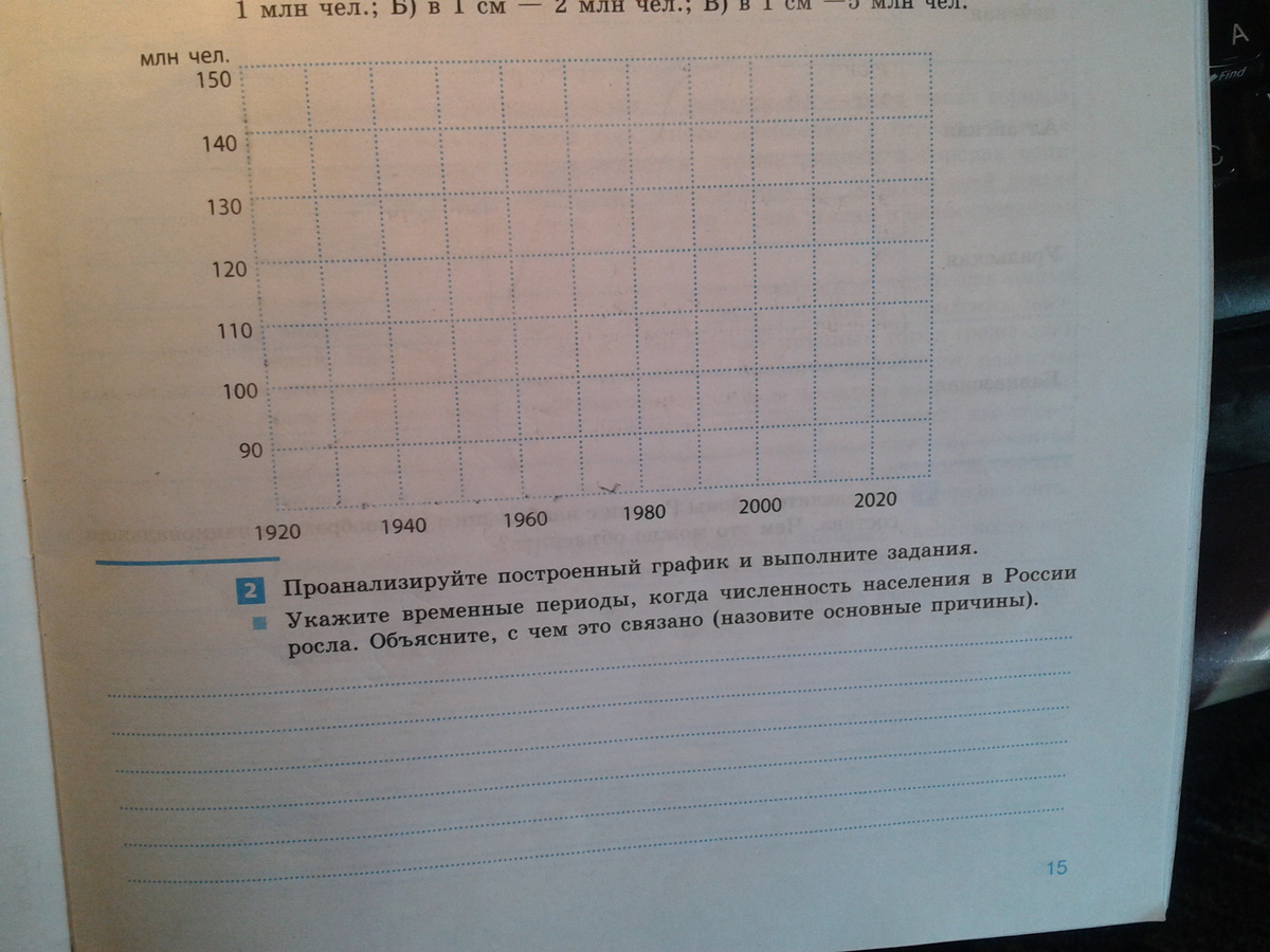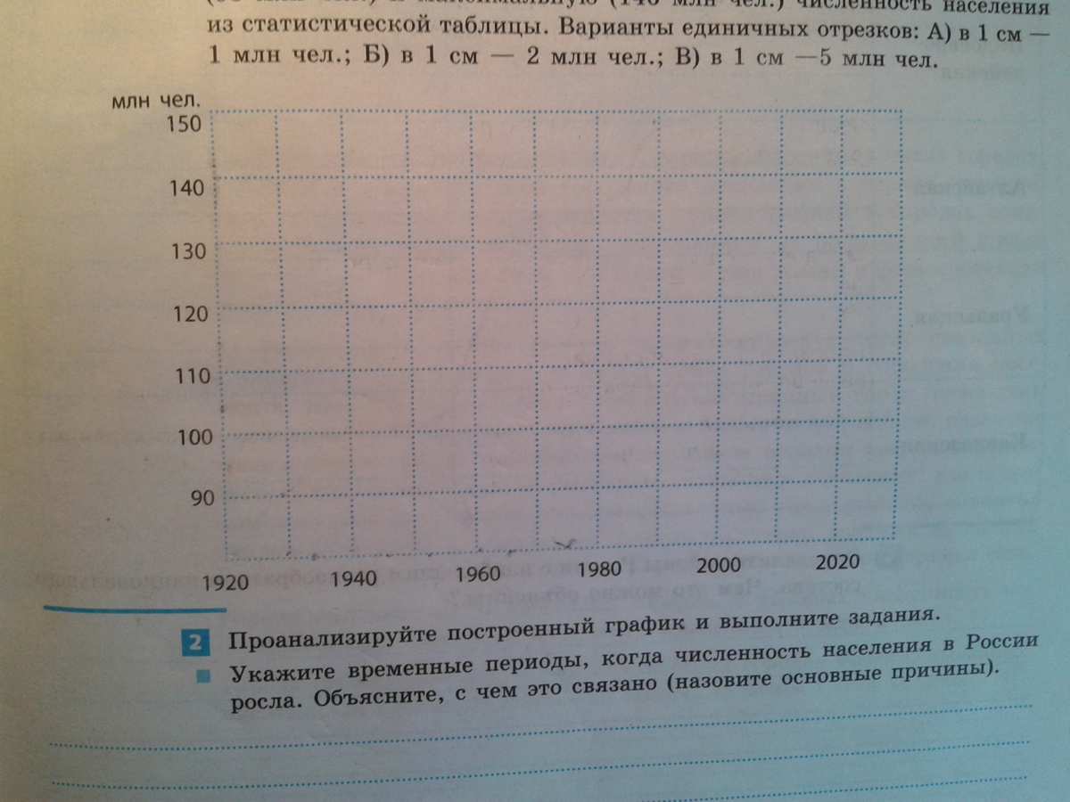 Здравствуйте. Мне кажется, задание дано не полностью, к этой таблице должны быть конкретные данные , о росте населения(в цифрах).Только тогда можно построить график , и, прокоментировать его.