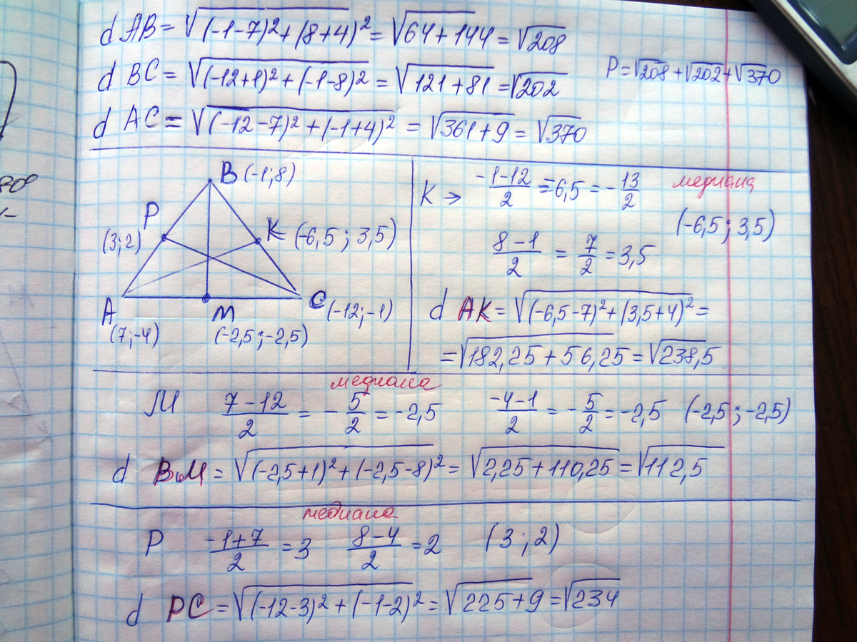 M((-1-12)/2;(8-1)/2)=(-13/2;7/2)