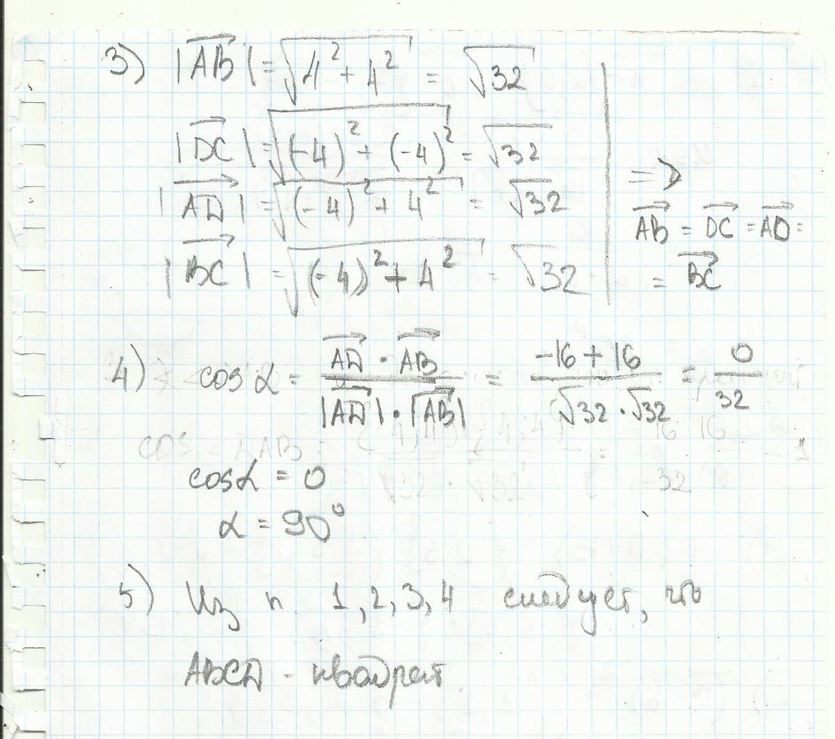 Задание №2. Даны точки A(0;0, B(4;4), C(0;8), D(-4;4). Покажите, что четырёхугольник ABCD- квадрат.