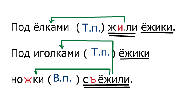 вставь пропущенные буквы. подчеркни в предложениях подлежащее и сказуемое. стрелками покажи словосочетания. в скобках укажи число и падеж существительных в словосочетаниях.