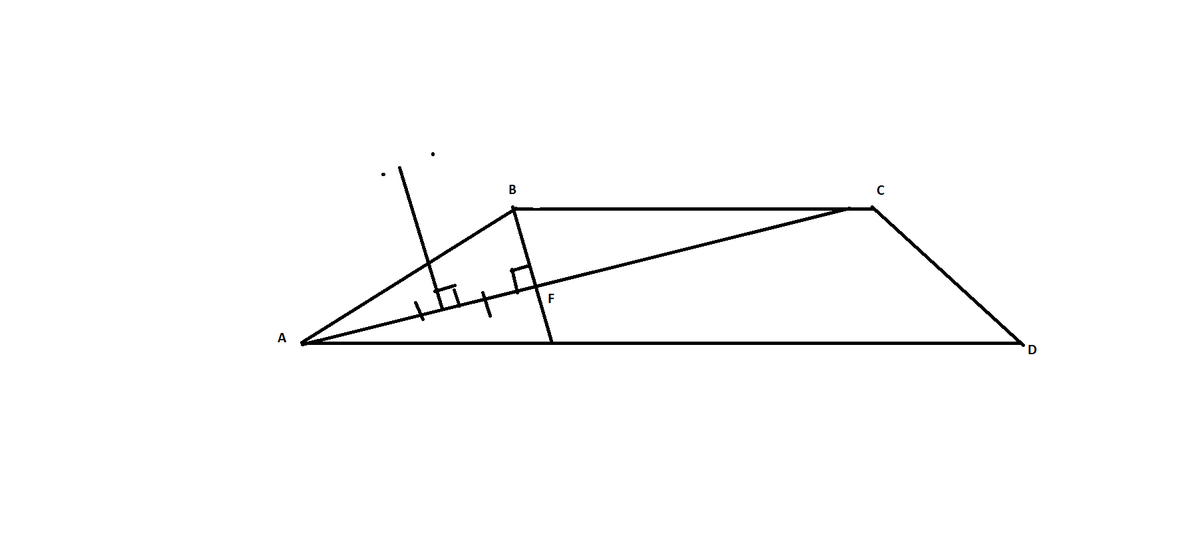 В выпуклом четырехугольнике АBCD сумма градусных мер углов ABC и BAD равна 180 градусов,а биссектрисы этих углов пересекаются в точке F.Докажите,что прямая ВF параллельна серединному перпендикуляру к отрезку AF.