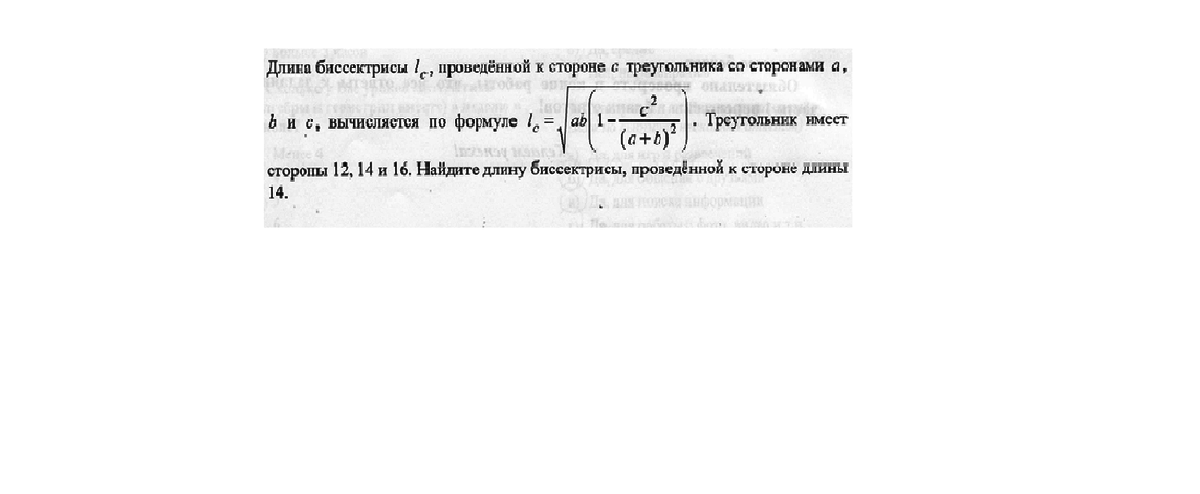 Ответ: 12 - длина биссектрисы, проведенной к стороне длины 14