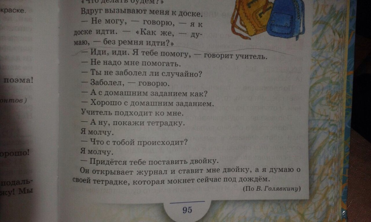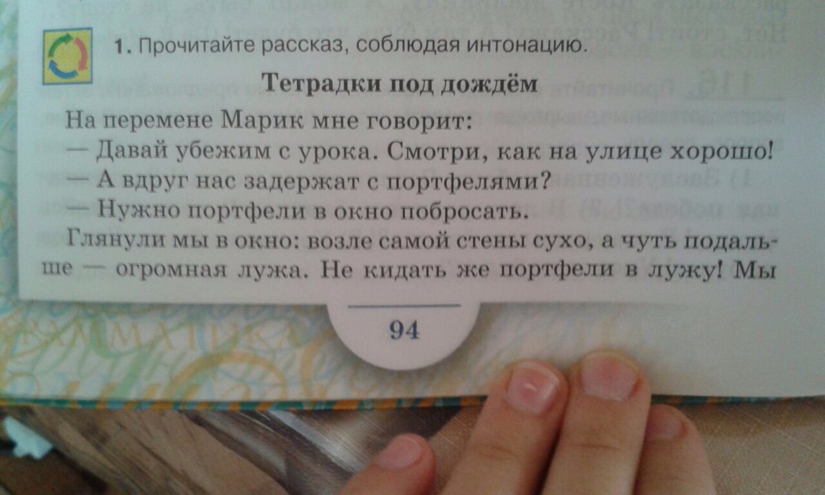 Помогите пожалуйста 5 класс. 1)Найдите побудительные предложения. Прочитайте их. Что они выражают: совет, просьбу, требование, приказ, приглашение? 2) определите, какое по цели высказывания и эмоциональной окраске предложение Не кидать же портфели в лужи! 3) Как вы думаете, почему в рассказе много вопросительных и побудительных предложений?
