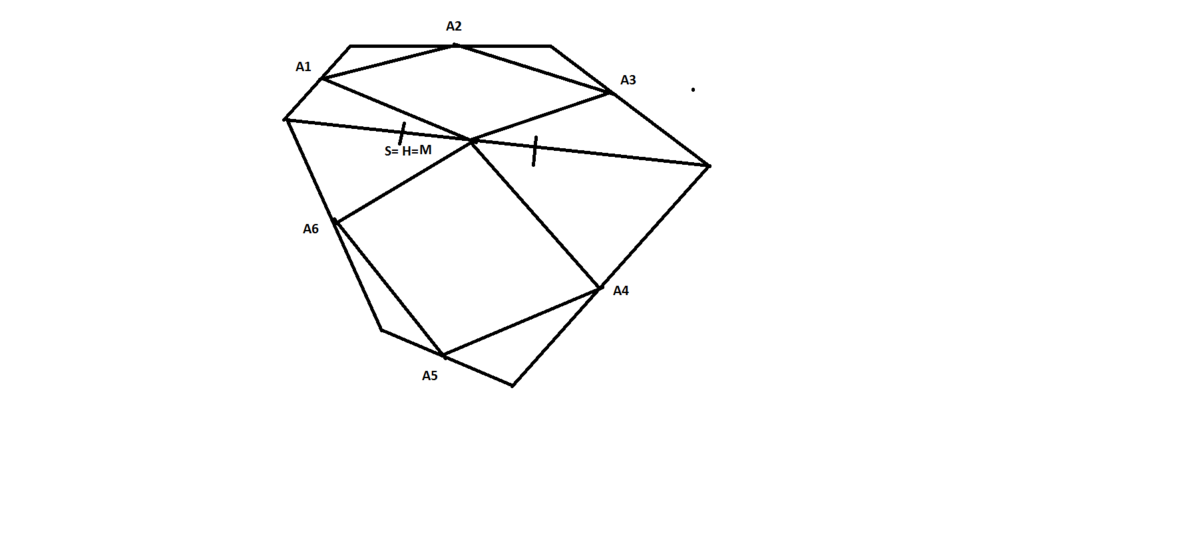 Пусть А1,А2,А3,А4,А5,А6-середины последовательных сторон шестиугольника,А1А2А3М И А4А5А6Н-параллелограми.Довести Н=М