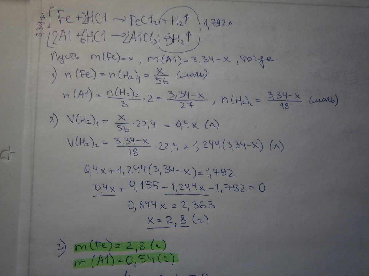 растворении 3.34 г смеси железа и алюминия в растворе соляной кислоты