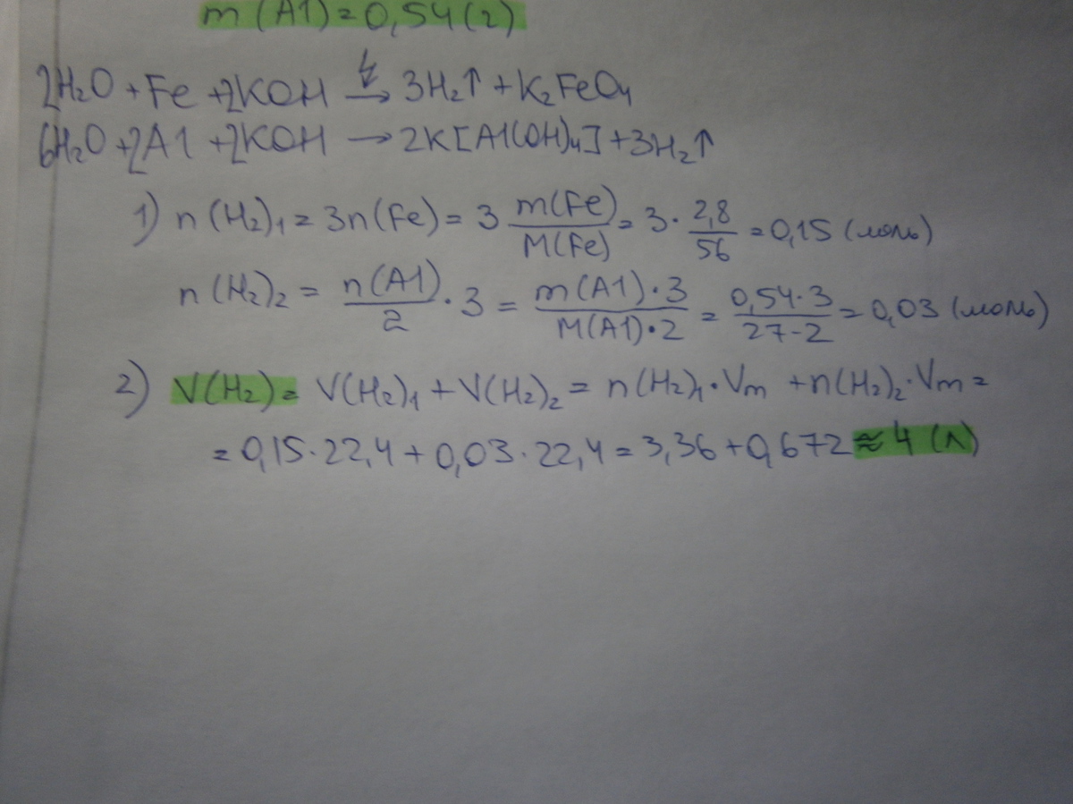 Рассчитайте массы железа и алюминия в исходной смеси. Рассчитайте объем газа (нормальные условия),