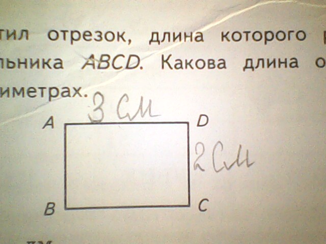 Ученик начертил отрезок, длина которого равна периметру прямоугольника ABCD. Какова длина отрезка?