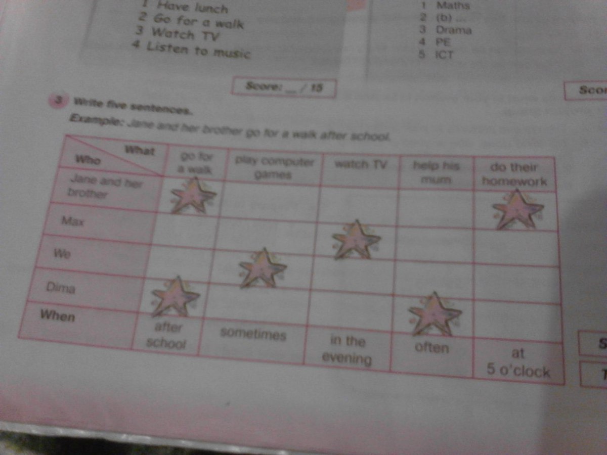 5.Jane and her brother do their homework at 5 o'clock