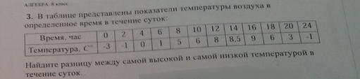 как мне кажется. Самая высокая температура это 9,а самая низкая это -3. Следовательно,разница 9-(-3)=9+3=12.
