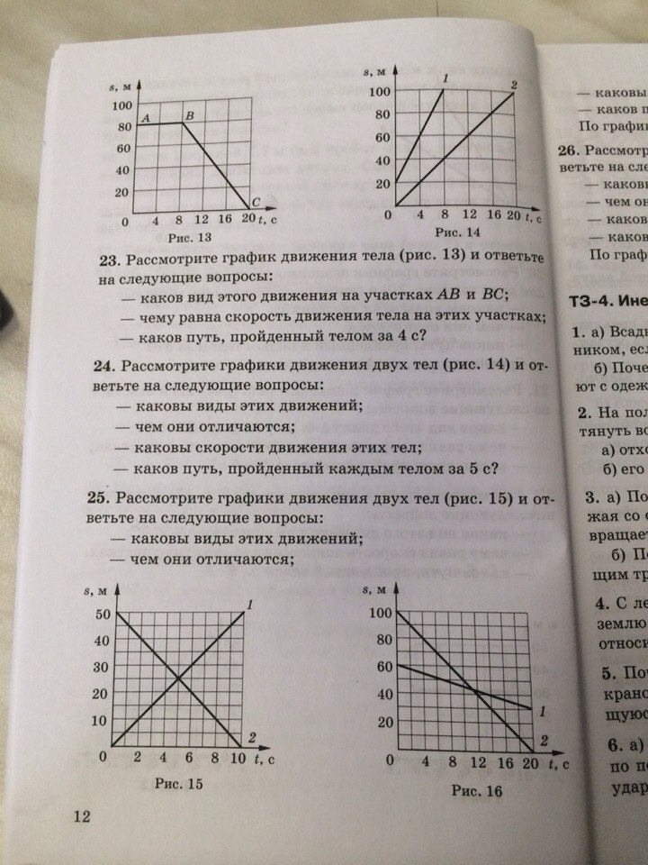 24.Рассмотрите графики движения двух тел (рисунок 14) и ответьте на следующие вопросы: