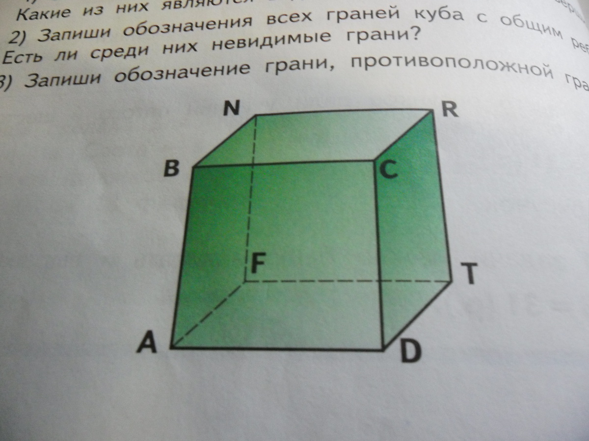 2) Запиши обозначения граней куба с общем ребром AD. Есть ли среди них невидимые грани?