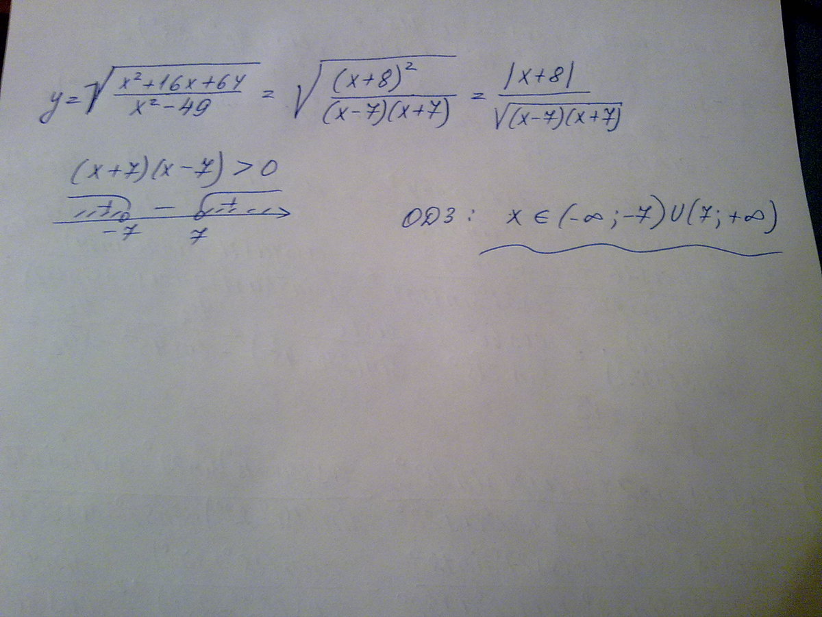 Корень из х в квадрате + 16х + 64 деленное на х в квадрате - 49, найти область определения выражения