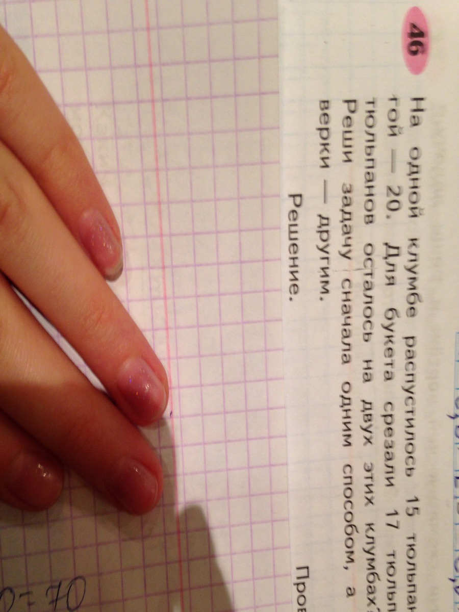 На одной клумбе распустилось 15 тюльпанов а на другой 20. Для букета срезали 17 тюльпанов. Сколько тюльпанов осталось на двух этих клумбах? Помогите найти решение по действиям и ответ!