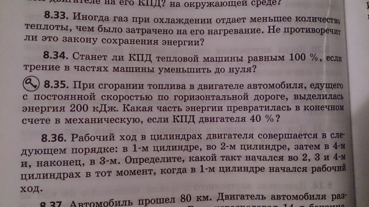 При сгорании топлива в двигателе автомобиля, едущего с постоянной скоростью по горизонтальной дороге, выделялась энергия 200 кДж. Какая часть энергии превратилась в конечном счете в механическую, если КПД двигателя 40%