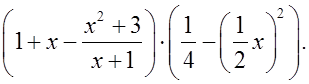 (1+x- frac{x^2+3}{x+1} )(1/4-( frac{1}{2}x)^2)= ( frac{x+1}{x+1} +frac{x(x+1)}{x+1}- frac{x^2+3}{x+1} )(1/4-( frac{1}{2}x)^2)=  \  ( frac{x+1+x(x+1)-x^2-3}{x+1} )(1/4-( frac{1}{2}x)^2)=  ( frac{x+1+x^2+x-x^2-3}{x+1} )(1/4- frac{1}{4}x^2)=  \   frac{2x-2}{x+1} *1/4*(1-x^2)=    frac{2(x-1)}{x+1}*1/4*(1-x)(1+x)=   \  frac{-(1-x)}{x+1}*1/2*(1-x)(1+x)=frac{-(1-x)}{1}*1/2*(1-x)= - frac{(1-x)^2}{2} = \ - frac{1-2x+x^2}{2} =-0.5x^2+x-0.5