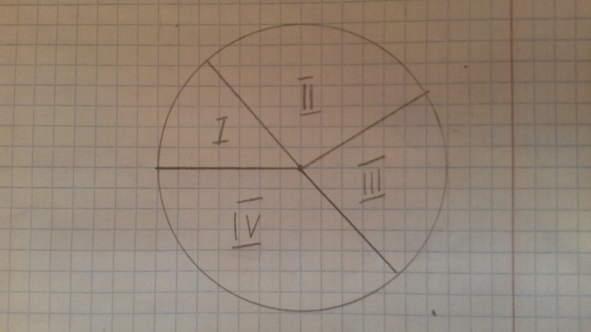 Помогите пожалуйста решить задачу. Постройте круг и разделите его на 4 сектора так, чтобы угол первого сектора был 50 градусов, угол второго сектора был в 2 раза больше угла первого сектора, а угол третьего сектора был на 20 градусов меньше, чем угол второго сектора. Измерьте угол четвертого сектора.