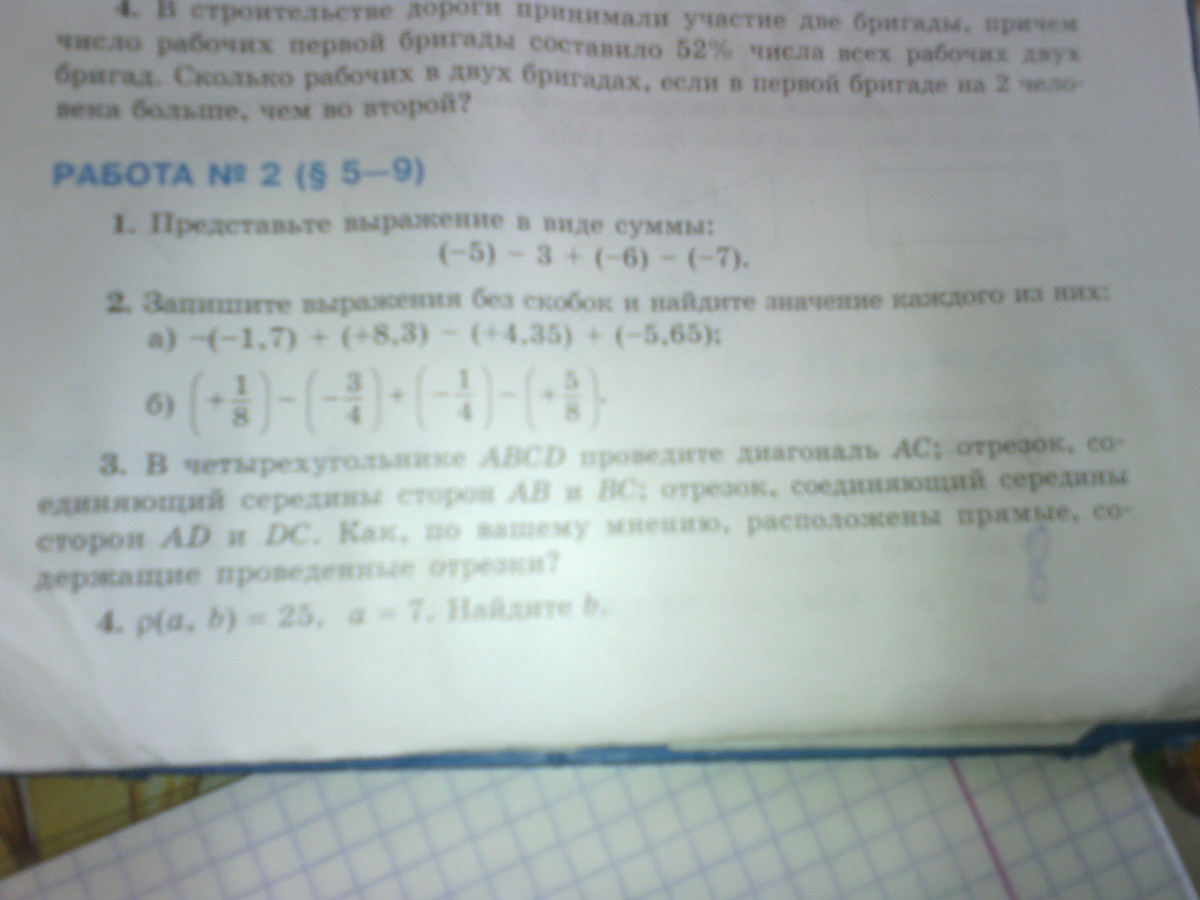 1)-8-6+7 =-14+7=-7 2)1,7+8,3-4,35-5,65=10-10=0 3) Эти отрезки будут параллельны диагонали! №4 непонятен знак между а и в
